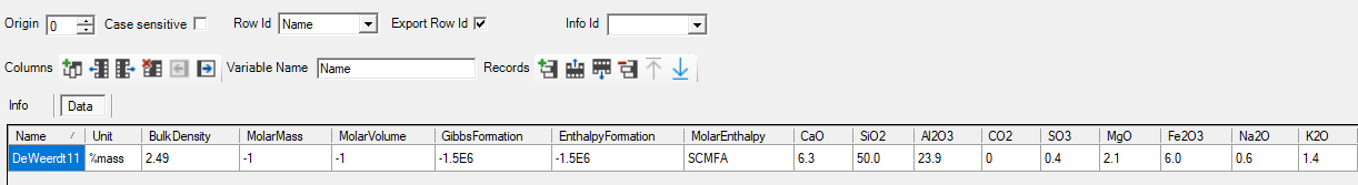 The data block FA contains information on the composition of FA in terms of weight percentages of the different oxides.