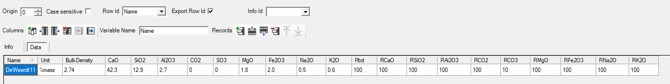The LS data block contains information on the composition of LS in terms of weight percentages of the different oxides.