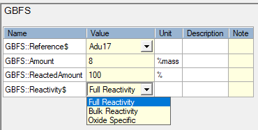 - Option “Bulk Reactivity” – assuming the same reactivity of all oxides. The reactivity is defined in data blocks with the oxide composition of the SCM in the column Rtot (e.g., in the data block GBFS, similar for the other SCMs).