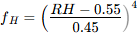 where RH is the relative humidity, and: