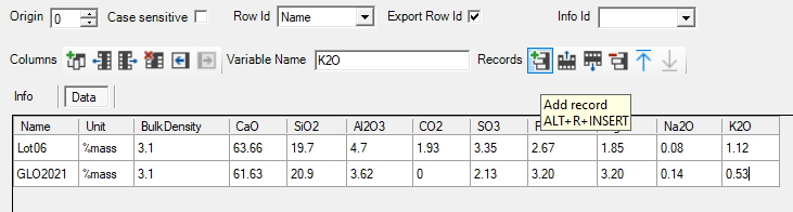 Select GLO2021 in drop down menu of the Cement::Clinker::Reference$ record