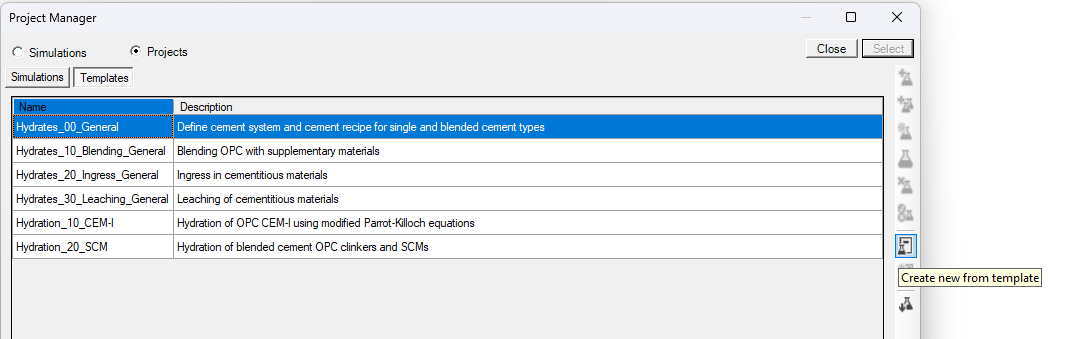 Select the simulation (CEM I) and click Select