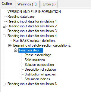 The output file gives the standard phreeqc output related to a batch reaction calculation. All geochemical information can be obtained from this file. The template also produces a special output file with the most important information for the cement system.