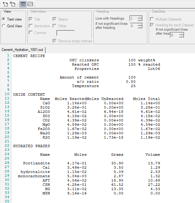 Open the file “Cement_Hydration_1001.out”