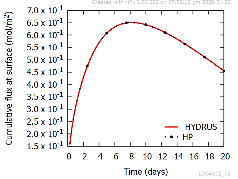 Figure 3 shows an excellent agreement between the cumulative influx of gaseous Gc at the surface obtained with HYDRUS-1D and HPx.