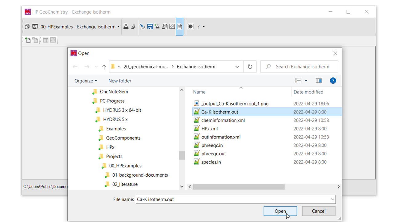 Select the datafile of interest (here Ca-K isotherm.out).