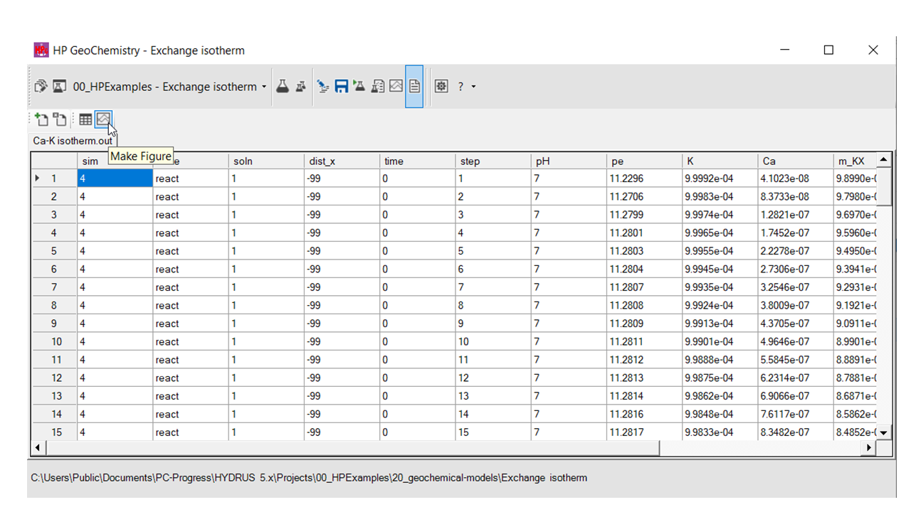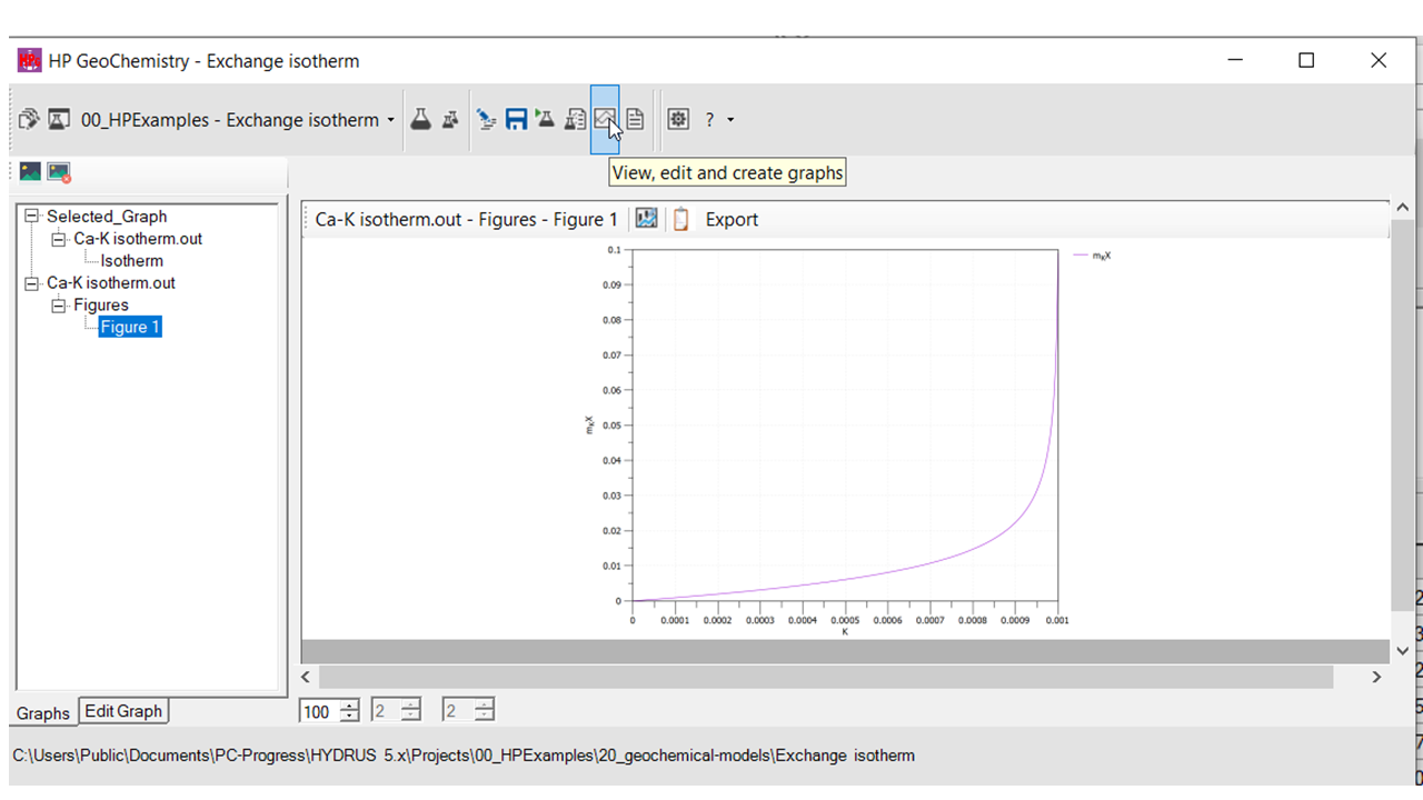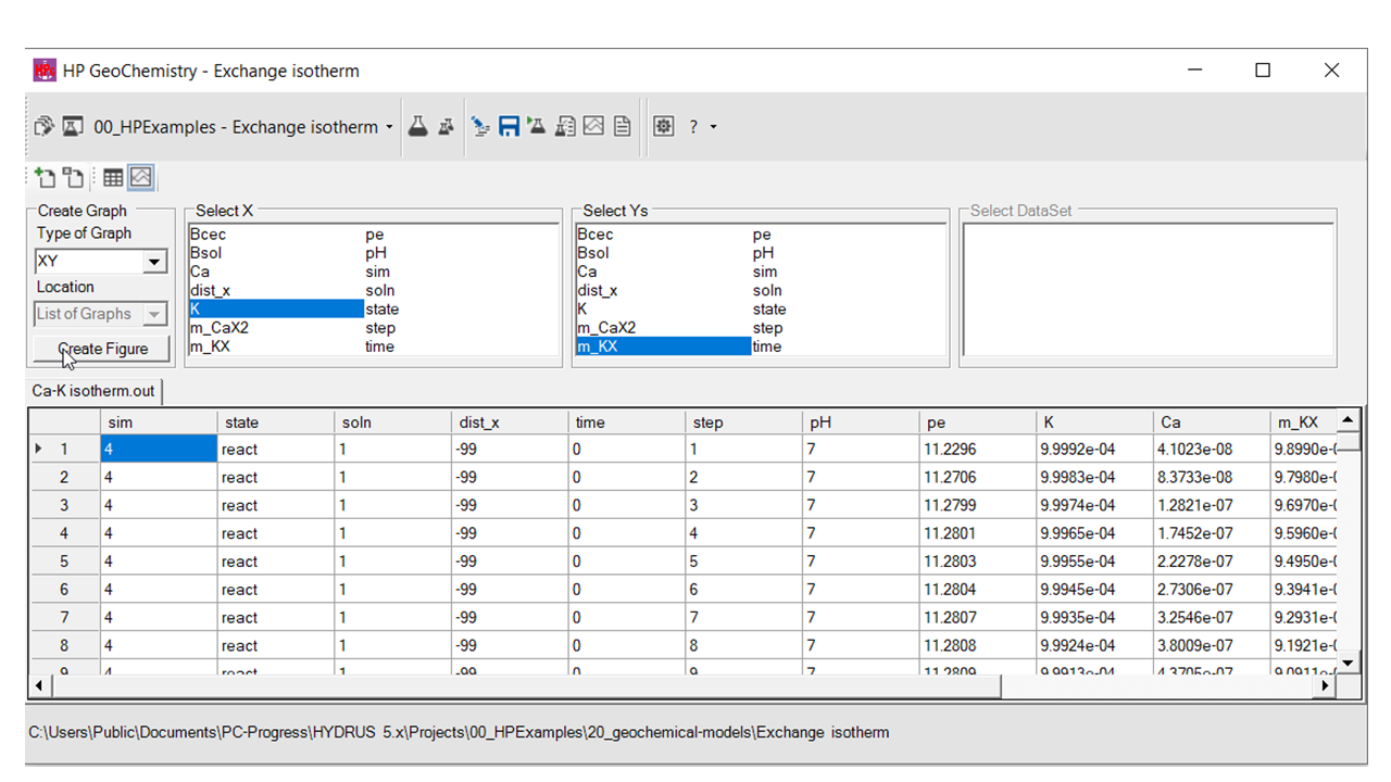 As an example, a plot is made from the output file of the HPGeochemistry example Exchange isotherm.