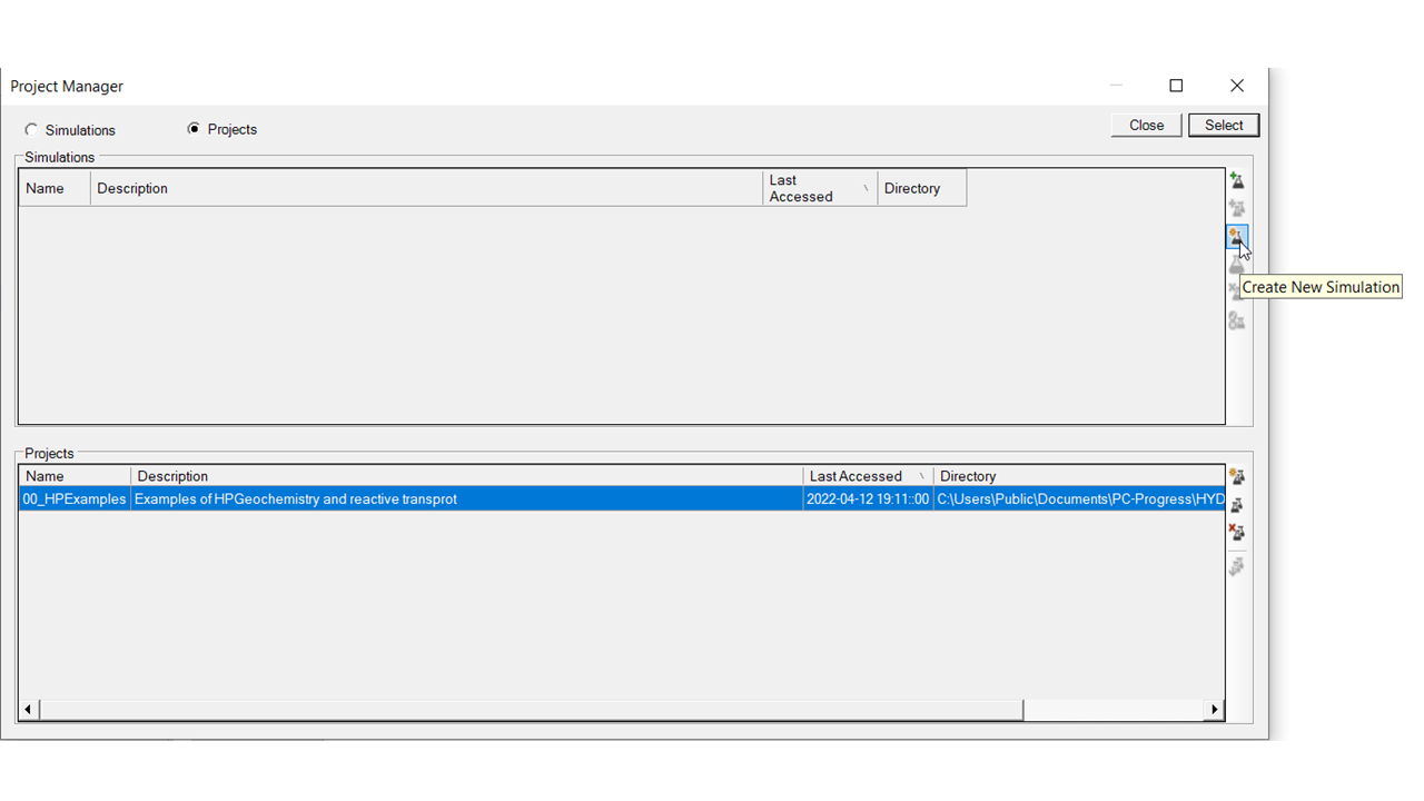 The Project Manager of HYDRUS 5.x allows for creating a new project group (see ).