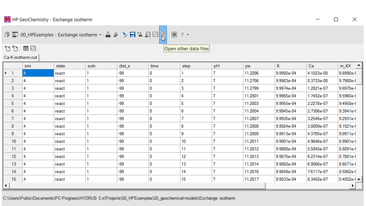By default, the folder 21_transport-models is created in the project folder. In addition, a project group is added to HYDRUS 5.x with the same name as the HPGeochemistry project.
