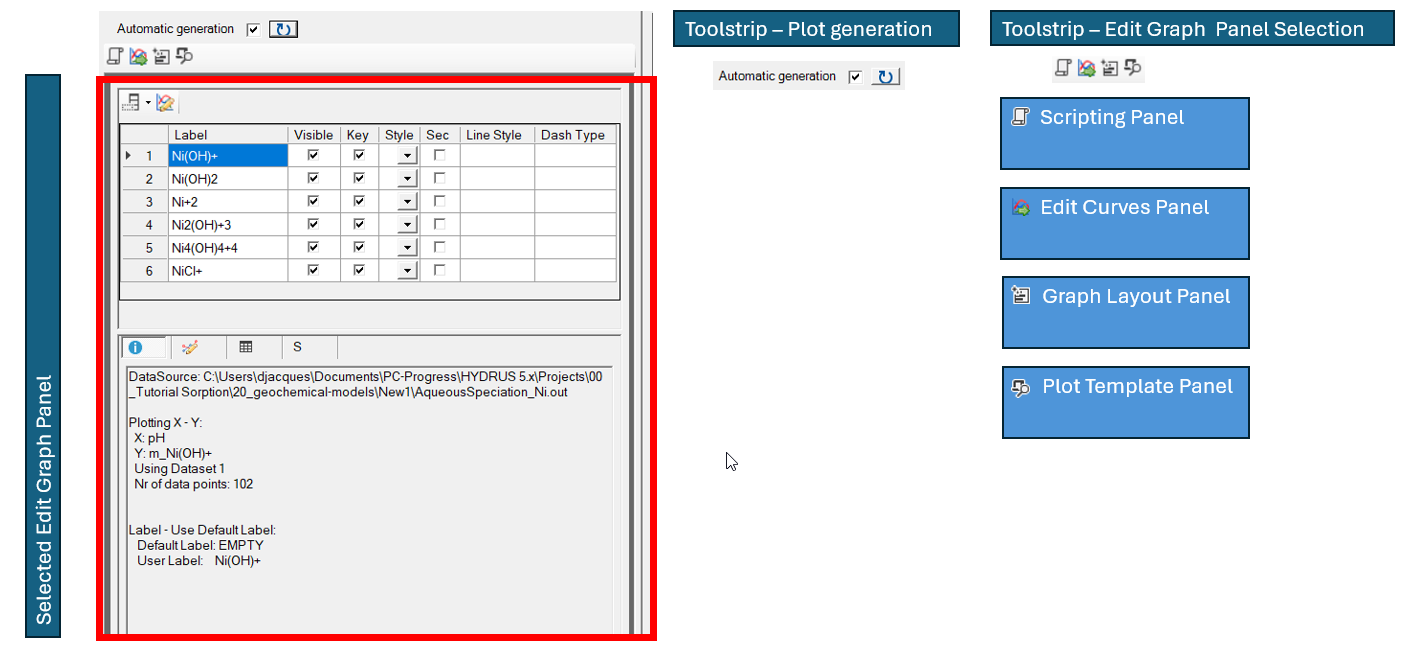Select Edit Curves Panel to edit properties of individual curves in the plot. The panel gives also information on the data for the individual curves. |