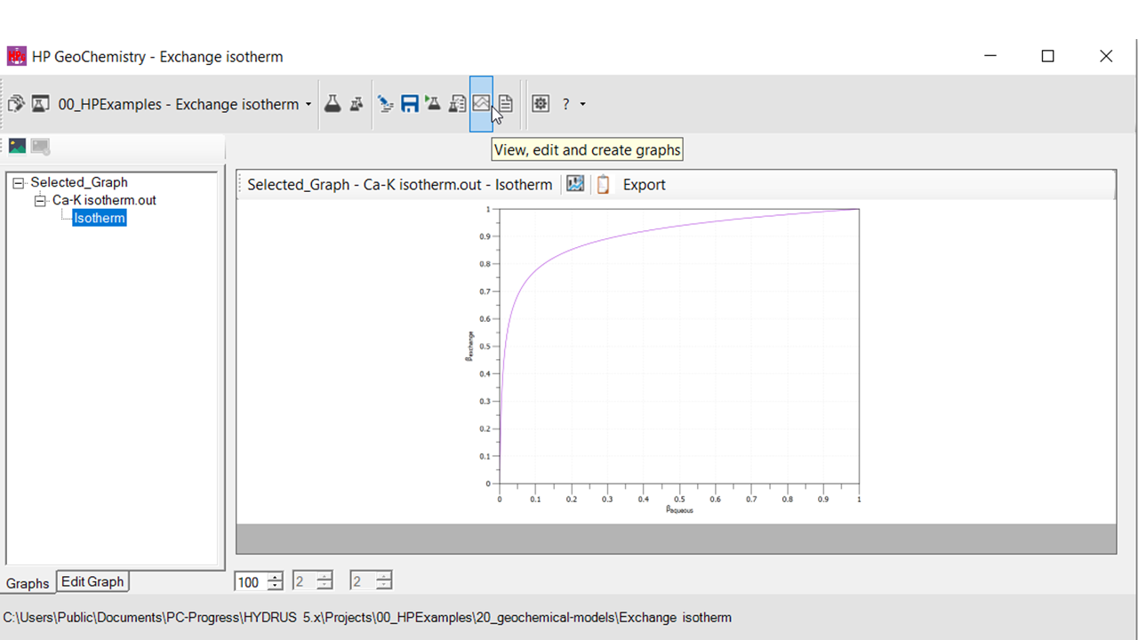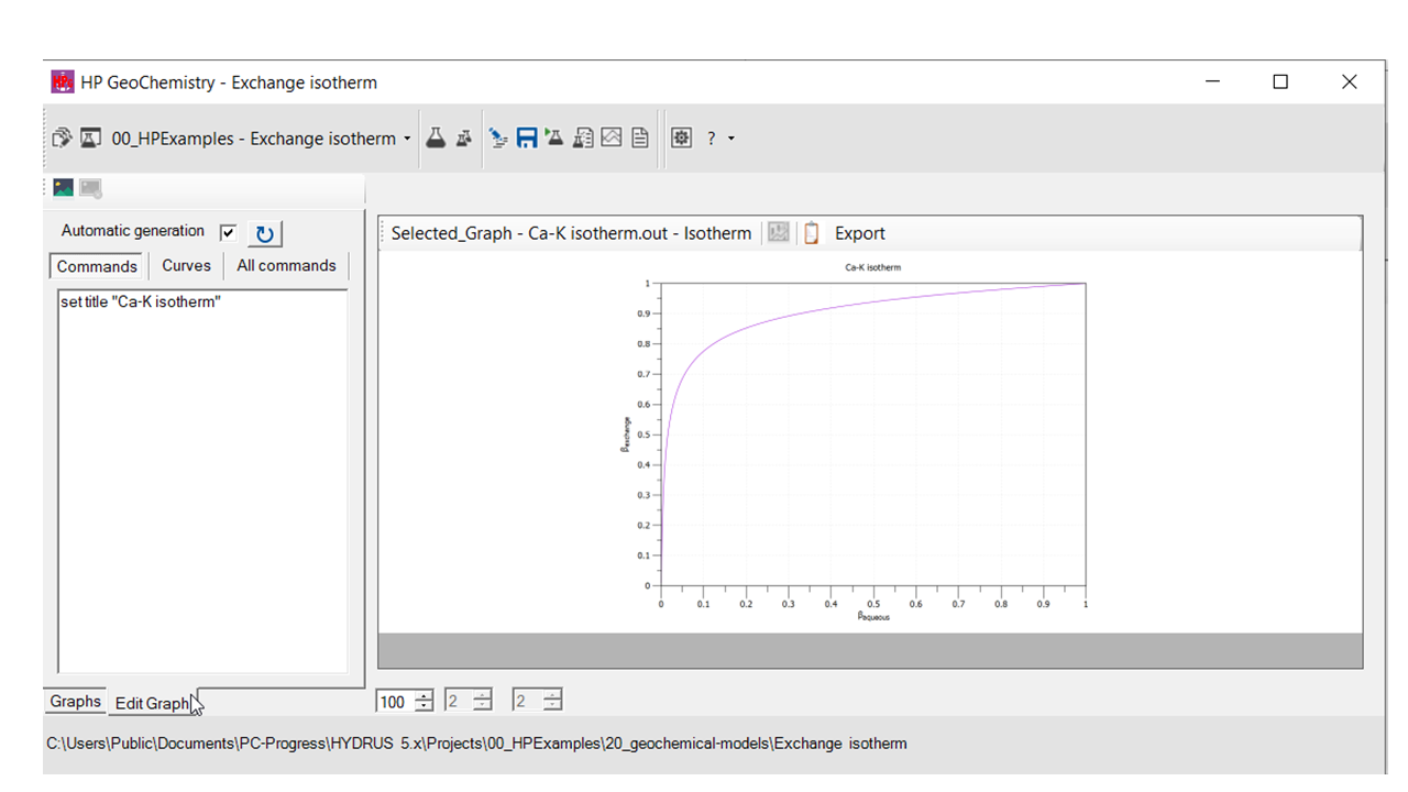 Selected_graph 1 uses the output variables in Ca-K isotherm.out. The user can define different graphs (with different numbers by -fig_nr) indicating the X and Y variables. The graphs defined in Selected_graph are visualized in the Graph Workspace.