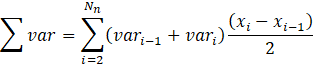 where Nn is the number of nodes, and x is the distance in the unit of the transport problem (UL). The unit of Σvar is thus M UL / dm³ with M the unit of var. Note that for example, for a concentration, var is concentration times water content.