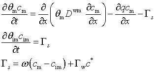 Dual-porosity non-equilibrium advection-dispersion equation [Simunek and van Genuchten, 2008]