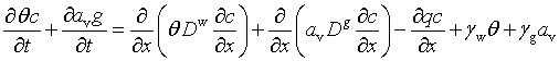 Equilibrium and non-equilibrium (non)linear sorption, linear equilibrium between aqueous and aqueous phase, first-order sequential (unidirectional) or decay rate reactions, and zero-order rate reactions are included in the advection-dispersion equation for solutes in the aqueous, solid and gaseous phase. The equation is: